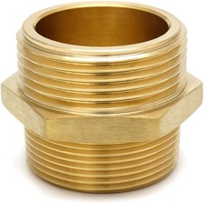 1-1/2" NST / NH (National Standard Thread / National Hose) Male. Brass Hexagonal Nipple Fire Hose Adapter. 1 × 1-1/2" NPT × 1-1/2" NST/NH Fire Hose Hex Nipple Adapter. Design: Hexagonal nipple fitting for wrench grip.