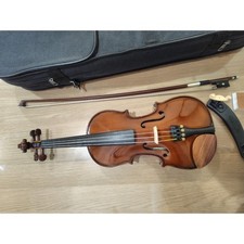 The bow was rehaired in October 2024, ensuring optimal performance. The violin body shows a minor scratch as seen in photo 14, and the bow has slight tape peeling near the frog as shown in photo 15.