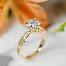 1.2Ct Round Cut Lab Created Diamond Women Engagement Ring 14K Yellow Gold Plated