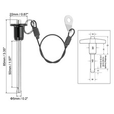 Convenience and efficiency with our T Handle Quick Release Pin! Designed for both professional and DIY applications, this fastening solution is perfect for quick adjustments and secure locking in various settings.SpecificationColor: SilverMaterial: 304 Stainless Steel & Aluminum AlloyUsage Length: 50mm / 1.97 inchesPin diameter: 5mm / 0.2 inchesBead Protrusion Width: 5.6mm / 0.22 inchesBead Positioning Length: 6.5mm / 0.26 inchesOverall Size: 85 x 22mm / 3.35 x 0.87 inchesPacking List: 1 Pcs T Handle Quick Release Pin & 1Pcs Lanyard CableAdvantageMade of durable 304 stainless steel, all have high hardness, wear resistance, corrosion resistance, and long service life, and not easy to deform and bend. The ball cap is made of aluminum alloy material, electroplated in oxidizing black, is not easy to scratch.