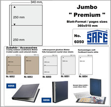 Description: 10 x Safe 6050 Jumbo additional sheets divided into 2. Extra strong film. For the greatest album in the world. For large format photo posters, graphics, stocks, securities, documents, drafts, drawings. 6055 Jumbo Album Premium with blind embossing on the cover 6057 Jumbo Album Classic with gold line print on the cover and brass design reinforced corners Safe 6052 with 2 pockets 340 x 250 mm with sand-colored ZWL Safe 6050 with 2 pockets 340 x 250 mm transparent - crystal clear Safe 6051 with 1 bag 340 x 508 mm transparent - crystal clear Poster and poster accessories for exhibitions and decoration: Safe 109 adhesive pads for hanging the poster sleeves, 2x pack, reusable and removable Pictures are samples and may vary. Decorations & coins & stamps & extras shown are not include.