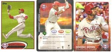This lot features ROUGHLY 100 DOMONIC BROWN baseball cards, perfect for collectors or fans of the sport. THE PICTURES ABOVE WILL SHOW ALL THE DIFFERENT CARDS IN THIS LOT. YES THERE IS MANY DUPLICATES IN THE LOT BUT THE CARDS FOR THE MOST PART ARE IN NEAR MINT CONDITION WITH A FEW A LITTLE LESS. IF YOUR A FAN OF HIS THIS LOTS IS FOR YOU EVEN WITH DUPLICATES FOR THE PRICE IS FAIR. ANY REASONABLE OFFER WILL BE ACCEPTED.
