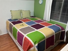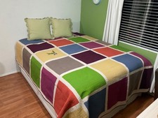 100% Cotton King Size Quilt bed spread yellow blue green block pattern farm home