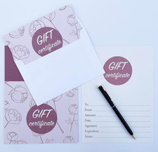 But we all know flimsy certificates get screwed up, lost and thrown in the trash. Isn't it better to just your best foot forward instead, with a set of 100 high-quality Gift Voucher Cards and matching envelopes.