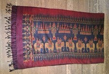 100% Silk Ikat Elephant Shawl Or Temple Banner, Purple,95" x24”