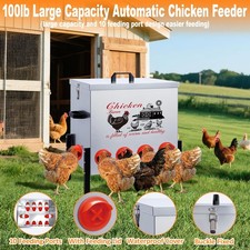 Large Capacity Chicken Feeder:The automatic chicken feeder keep your poultry well-fed with minimal effort using our heavy-duty 100 lb capacity feeder,perfect for chickens, ducks, geese, and more. In addition, 8 ports allow multiple chickens to eat at once, reducing competition and keeping everyone fed.