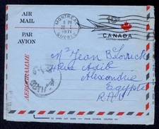CANADA 10c AEROGRAM 1971 TO EGYPT with RECEIVER.