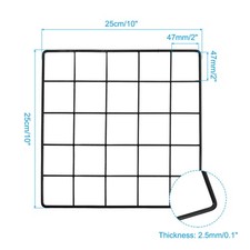 Our wall grid panel is a good home supply for displaying and organizing. It is widely used in retail store, trade show, home, office, supermarket, living room, bedroom, study room, kitchen, etc. Suitable for hanging photos, pictures, postcards, message cards, memos, or others, displaying the goods, decorations, and storing tools. Decorating this wall grid panel with color lights, flowers, etc. will make it more beautiful.SpecificationMaterial: IronColor: BlackSize: 25x25cm/10x10" (LxW)Thickness: 2.5mm/0.1"Hole Size: 47x47mm/2x2" (LxW)Package List: 1 Pcs x wall grid panelAdvantageOur wall grid panel is made of quality iron, adopting plastic-coated technology for rustproof and corrosion resistance. The wall grid panel is sturdy and the good spot connection technology makes the joint excellent, is not easy to deform, and is durable for use.