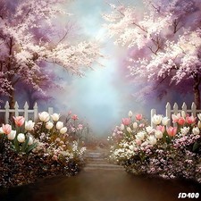 10'x10'Computer-painted Floral Fence Tree Path Scenic Background Backdrop SD400
