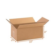 10X6X4 Size Shipping and Packing Box - Cardboard - Shipping Box 10 x 6 x 4" * Cube Boxes (ECT-32 Single Wall Corrugated) * Boxes are shipped flat or folded * Tape not included. * Easy and quick assembly is required to make flat boxes into standard boxes * Use this popular size cube box to package cylindrical, round or odd shaped products * Manufactured from ECT-32 kraft corrugated * Sold and shipped flat in bundle quantities * .24 Lbs each Singlewall corrugated 10x6x4 cardboard boxes are the industry standard. These durable Cartons can be used universally for various shipping applications via water, railroad, and air. Buy cardboard boxes and packaging boxes wholesale