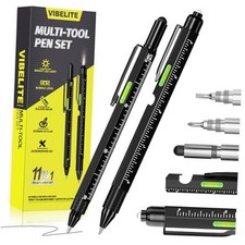 11 in 1 Multitool Pen Set with LED, Stylus, Level, Screwdriver, 2 Pack Black additional preview