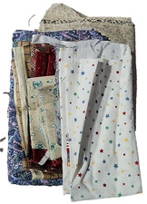 This fabric lot includes 11 pieces of assorted designs, colors, and yardage suitable for arts, crafts, sewing, and quilting projects. The fabrics are made of a combination of cotton and polyester fibers with different fabric types such as stars, cats, folk art, Christmas, florals, paisleys, and more. The fabric weight is medium, and the country or region of manufacture is unknown. These remnants are perfect for those who love variety and want to add a touch of creativity to their projects.