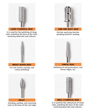 【Nail Drill Bits Perfection】:Achieve flawless nails with our Nail Drill Bits Set. This comprehensive kit includes 11 different nail drill bits and 6pcs File Sanding Bands (#80, #120, #180 grits), ensuring precision in every manicure or pedicure.