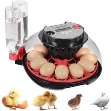 This Simple Plus Series 12-Egg incubator holds up to 12 chicken eggs or 24 quail eggs. Suitable for chicken, duck, goose, quail, pigeon, turkey, and other poultry eggs.