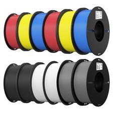 12 Pack PLA 1.75mm Filament Bundle for 3D Printing with No-Tangling Strong Bonding and Overhang Performance, Accuracy +/- 0.02mm (Black,White,Grey,Blue,Red,Yellow)