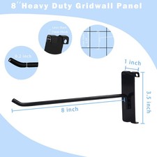 7RiversARTBlack 8" Gridwall Hooks 12 Pcs Heavy Duty Gridwall Panel Hooks for Grid Wall Panel, Gridwall Peg Hooks,Black. EASY TO USE: Our display hooks are compatible with standard 3" x 3" grid walls for easy installation and versatility.