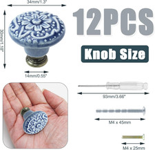 12 Pcs Light Blue Vintage round Ceramic Cabinet Knobs and Pulls for Drawer, Cupb additional preview
