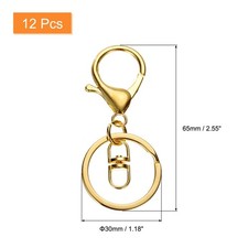 12 Pcs Lobster Claw Clasp Keychain with Swivel Clip Split Ring, Gold