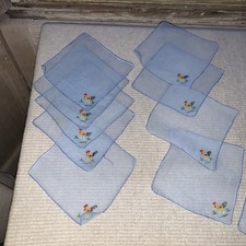Gorgeous vintage 1940s? small tea napkins embroidered with cross stitch rooster and small keepsake pouch 12 in total some with stains (3-4) but others in good condition for age.