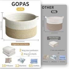 125L Extra Large Blanket Basket, 25" x 16", Jumbo Laundry 1 Pack white brown