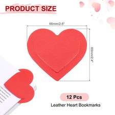 These leather heart bookmarks are both beautiful and practical, making them perfect for everyday use by book lovers, teachers, and professionals. Whether at home, in the office, or in the library, these bookmarks can serve as perfect page markers to mark your position in your diary, storybook, and other books, allowing you to easily track your reading progress.Specifications:Material: LeatherColor: RedSize: 66 x 60mm / 2.6 x 2.4 inch ( L * W )Packing List: 12Pcs x Leather Heart BookmarksAdvantages:These bookmarks are made of PU leather, soft and comfortable to the touch, waterproof, and easy to clean. Fine stitching enhances the bookmarks' durability, ensuring they are resistant to fading or tearing and last for a long time. The heart-shaped design is simple yet elegant, adding a touch of style to your books.