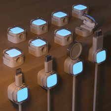 Magnetic glow in the dark cable organizer, night glow desktop phone charging cable plug, hook, cable collection and storage artifact.