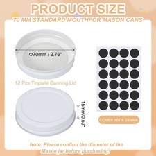 12Pcs Tinplate Canning Lids with Label for Regular Mason Jar White(70mm)
