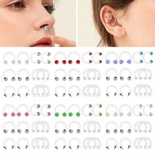 12X Multi Type Acrylic Crystal Horseshoe Nose Ring Flexible Bar Ear Piercing Set