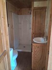 SALE IS MADE TO WEBSITE AJ CABINS .com 12x30 Trappers Cabin Cabin Includes: • (5) windows • 36 in Live edge door • Double bubble insulation • 4-foot porch • Electrical and plumbing installation • Pine interior walls • Planked flooring throughout • Small kitchen • Bathroom • 2 bedrooms Delivery fee applies