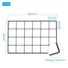 Our wall grid panel is a good home supply for displaying and organizing. It is widely used in retail store, trade show, home, office, supermarket, living room, bedroom, study room, kitchen, etc. Suitable for hanging photos, pictures, postcards, message cards, memos, or others, displaying the goods, decorations, and storing tools. Decorating this wall grid panel with color lights, flowers, etc. will make it more beautiful.SpecificationMaterial: IronColor: BlackSize: 30x20cm/12x8" (LxW)Thickness: 2.5mm/0.1"Hole Size: 47x47mm/2x2" (LxW)Package List: 4 Pcs x wall grid panelAdvantageOur wall grid panel is made of quality iron, adopting plastic-coated technology for rustproof and corrosion resistance. The wall grid panel is sturdy and the good spot connection technology makes the joint excellent, is not easy to deform, and is durable for use.