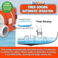 Built-in check valve prevents water from flowing back into the bilge, ensuring a dry and efficient bilge system. Low Profile Strainer. Maximum Flow Rate 1100 Gallons Per Minute. 12V DC Operation 1100 Gallons Per Hour.