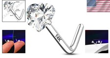 14K Real Gold Nose Stud - Heart CZ 20G