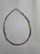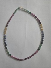 Never worn 14k yellow gold necklace. Natural rubbies, sapphire and emeralds. Please examine pictures for more details. A also have other necklaces for sale.