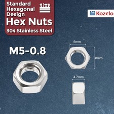 APPLICATION:These hex nuts serve multiple applications:-Industrial equipment maintenance and assembly-Agricultural machinery repairs-Tool and mechanical servicing-Indoor/Outdoor equipment requiring corrosion resistance-Scale model fabrication-Chainsaw flywheel nut replacementThey are matched with bolts and washers of equivalent size and surface finish for secure fastening solutions.ABOUT THIS PRODUCT/FEATURES:Material: 304 Stainless Steel 18-8 (A2-70)-High strength and durability-Rust resistance-Corrosion resistance-Oxidation resistance-Precise thread profile-Smooth surface finishSPECIFICATION:-Quantity: 150 pcs-Thread diameter: 5 mm-Thread pitch: 0.8 mm-Height: 4.