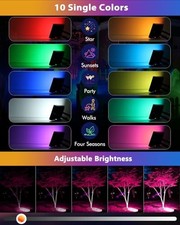And this outdoor led flood lights are very easy to install, no need for wiring, simply plug it in! T are 10 single colors with 6 adjustable brightness and flash/smooth mode, extra multi-color mixing working modes with adjustable speed can be chosen.