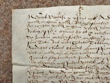 Dated Decimo Januaraii …Anno Regni Elizabeth…vicesimo sexto (10 January in the 26th year of the reign of Queen Elizabeth - dating it to 1584). Relates to the Release of land in Lancashire. Contents complete.
