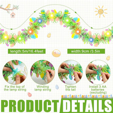 16.4 Ft Easter Tinsel Garland with LED String Light Easter Egg Twist Metallic Wi