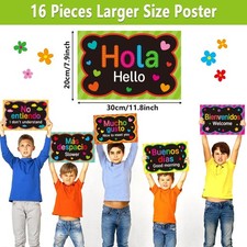 16 Pcs Spanish Words & Phrases Poster Set - Classroom Decorations & Study Mat...