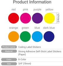 1600 Pack round Color Coding Labels, 3/4 Inch Multicolor Dot Stickers, Glossy Pa