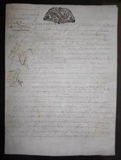 1736 antique parchment document, manuscript, calligraphy, seal, signed, 4 pages