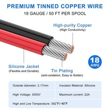 18 AWG Stranded Wire Spool 50ft Multi-Color Silicone Tinned Copper Hook Up Wire