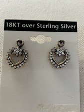18 KT over Sterling Silver CZs open heart stud earrings