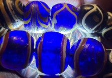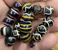 18 Large Black/Blue Venetian Fancy Lampwork Glass Bead, African Trade beads