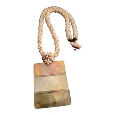 18" Triple Strand Twisted Beads with Plastic? Tan Rectangular Abalone Pendant.