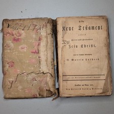 This is a very old new testament - German The covers are both separated from the book. The pages are falling apart if you leaf through without care This very old book is falling apart but valuable Please expect to have some book powder in your hands when touching this vintage awesome item
