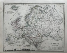 1850 Europe Hand Coloured Antique Map By John Dower Showing Mountains