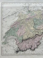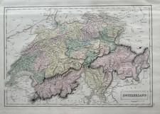 1851 Switzerland Hand Coloured Original Antique Map by Selina Hall