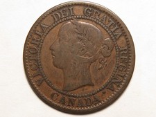 Up for sale is an 1859 Canada large cent grading VG. The toning is a little light; this coin may have been gently cleaned.