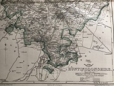 1861 HUNTINGDONSHIRE HAND COLOURED COUNTY MAP FROM WEEKLY DISPATCH