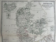 1884 Denmark Hand Coloured Original Antique Map by Johnston